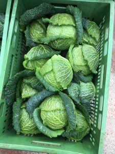 Aktuell gibt es verschiedene Wintergemüse aus eigenem Anbau, wie z.B. Wirsing.