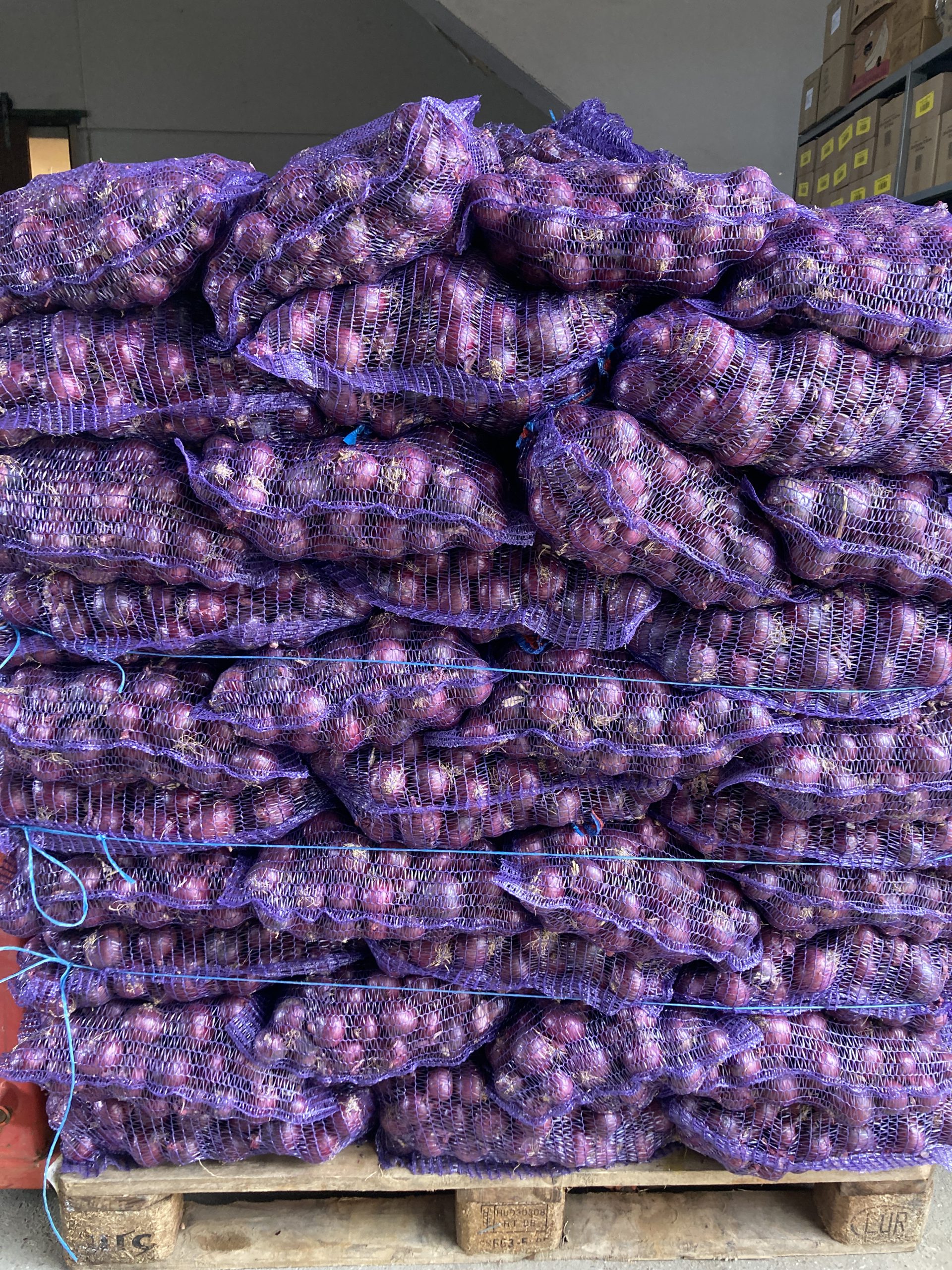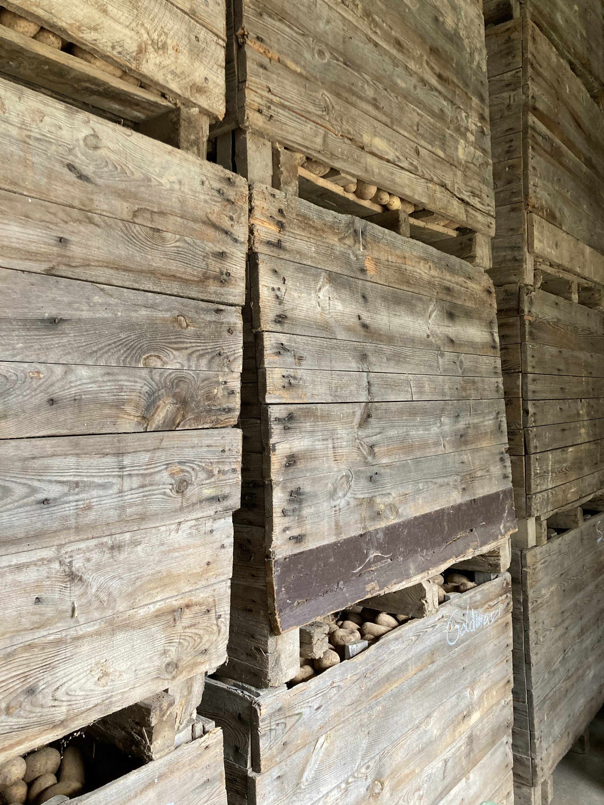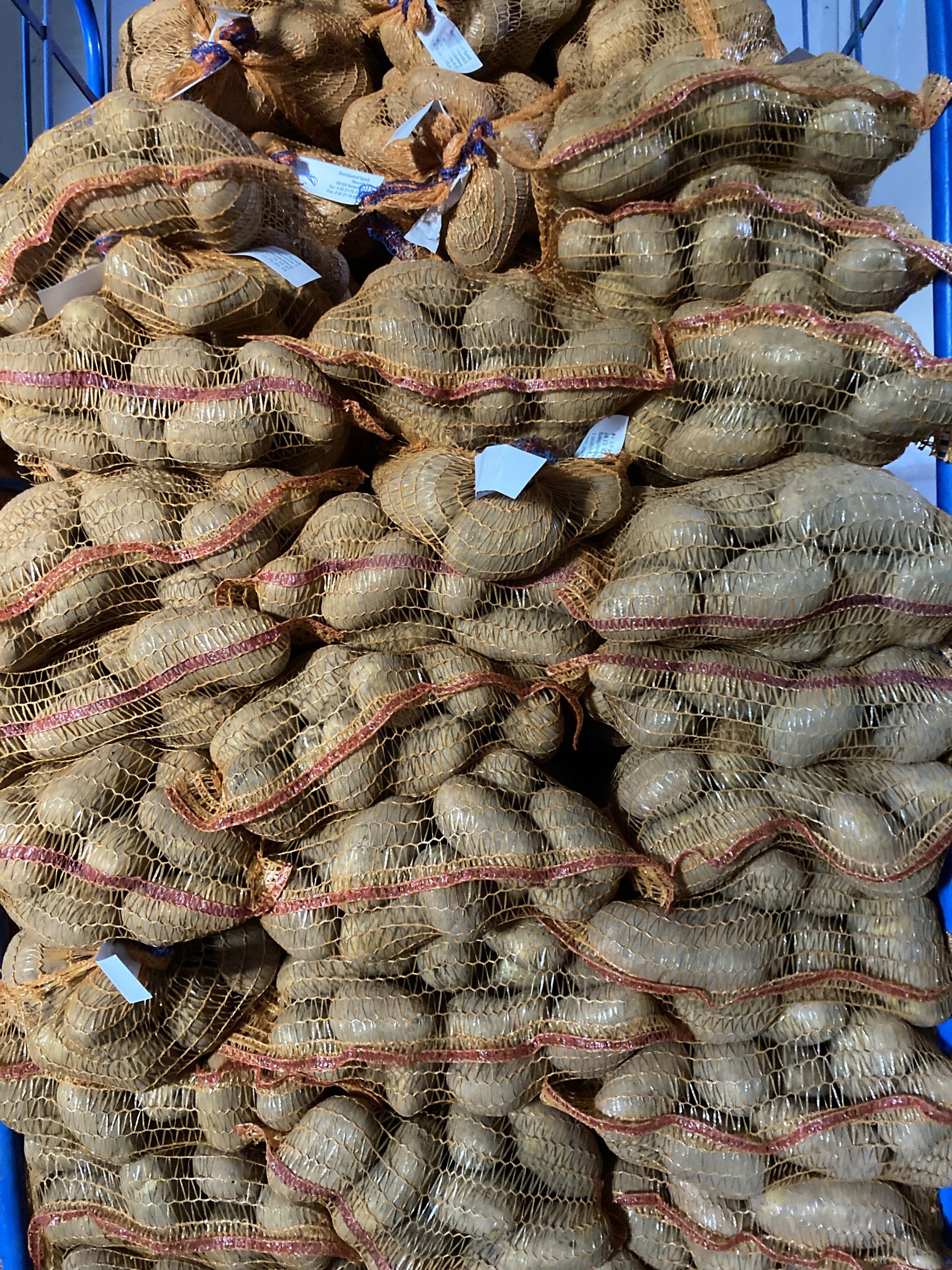 Die geernteten Feldfrüchte wie Kartoffeln und Zwiebeln werden sortiert und eingelagert.